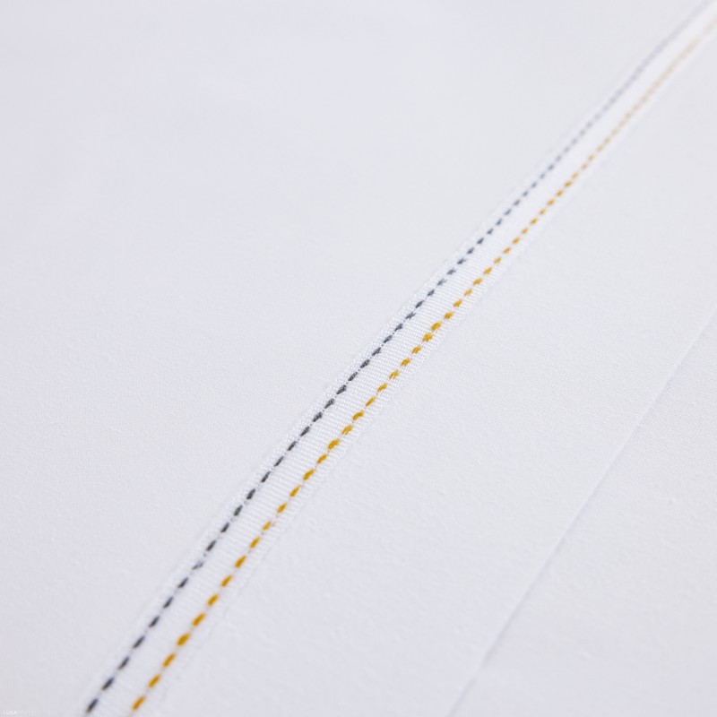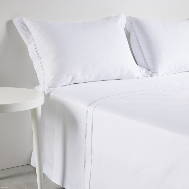 - 240X280: 1 lençol de baixo ajustável 160X200+30cm + 1 lençol de cima 240X280 pesponto duplo colorido + 2 fronhas 50x70 pesponto duplo colorido