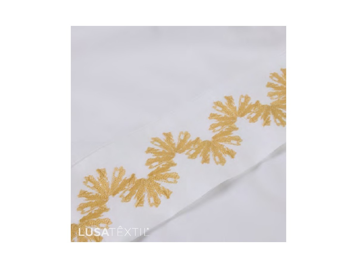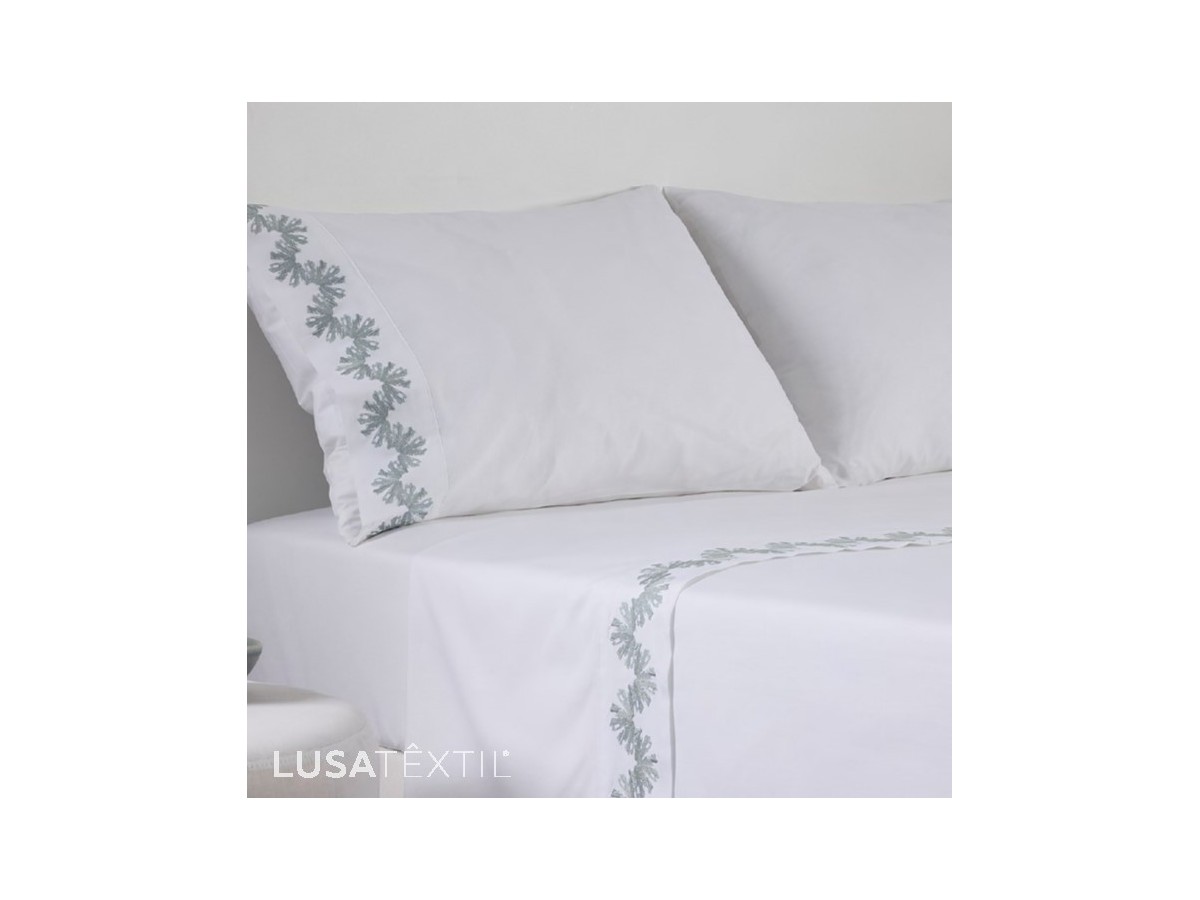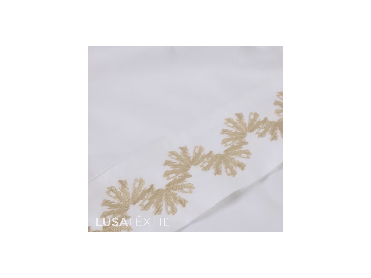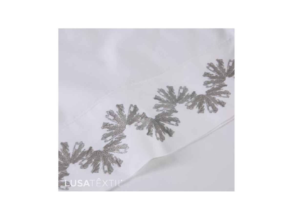 - 240X280: 1 lençol de baixo ajustável 160X200+30 + 1 lençol de cima 240X280 com bordado + 2 fronhas 50X70 com bordado