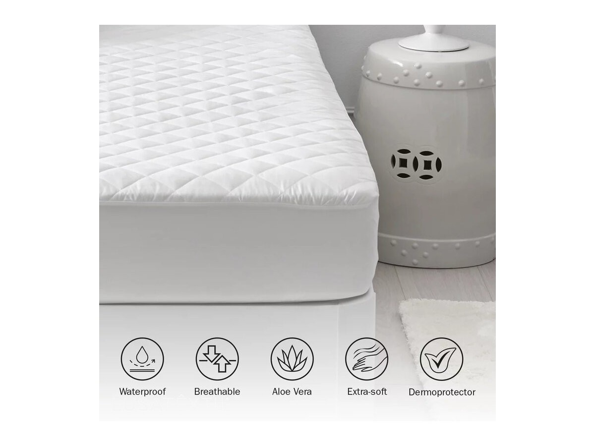 Protetor de colchão que oferece uma camada adicional de maciez e conforto, melhorando a qualidade do seu descanso graças ao seu acolchoamento. Seu tratamento com Aloe Vera não só proporciona propriedades protetoras para a pele, mas também, graças às suas propriedades antibacterianas naturais, ajuda a prevenir o aparecimento de odores indesejados
