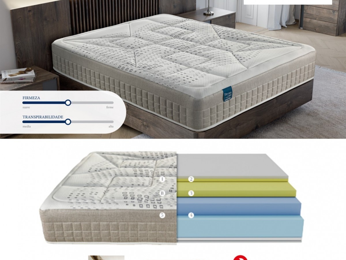 Bultex®: matéria avançada de estrutura celular, composta de milhões de alvéolos irregulares com diferentes tamanhos, agrupados em forma de favo de mel, que atuam como microsuportes. A sua estrutura interna oferece uma resistência proporcional ao peso de cada pessoa. Memory Foam®: material viscoelástico termossensível com efeito de memória. Facilita a dispersão da pressão do corpo sobre a superfície do colchão, acolhe eadapta-se à temperatura de cada corpo, permitindo um descanso maisprofundo sem interrupções.