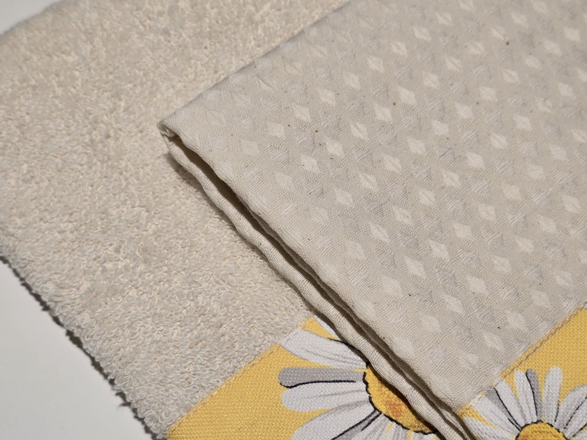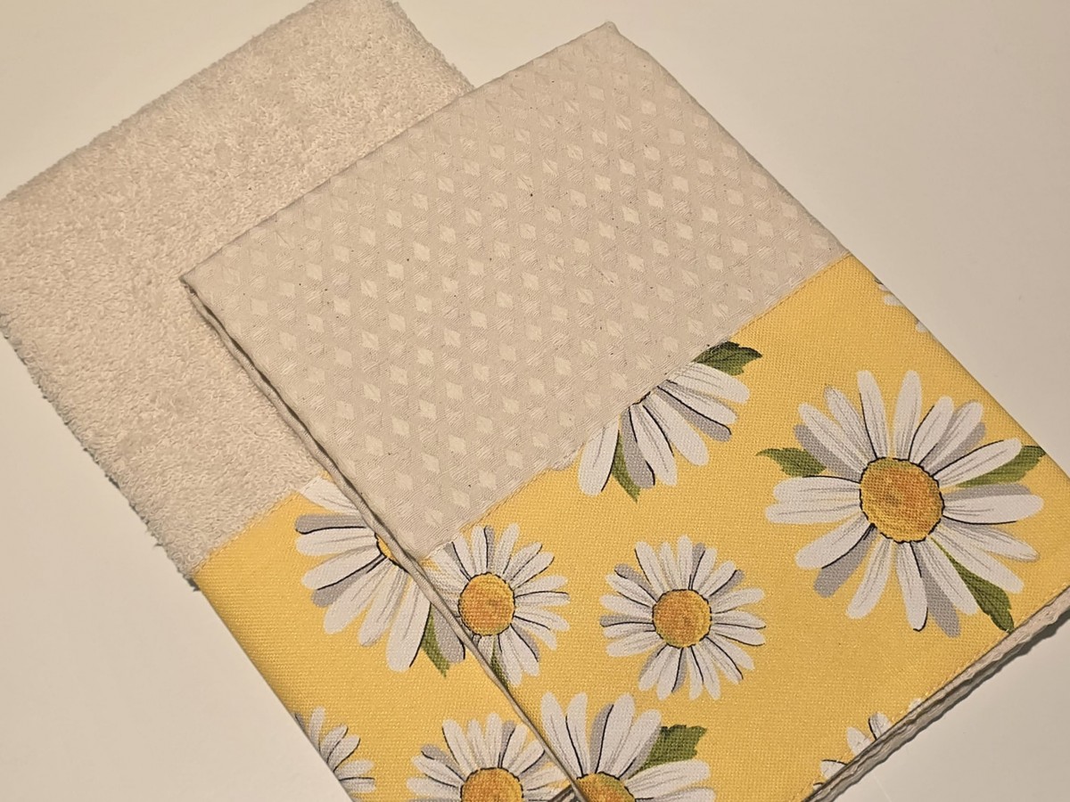 100% algodão | Barra aplicada | Kit 1 pano de cozinha + 1 felpo