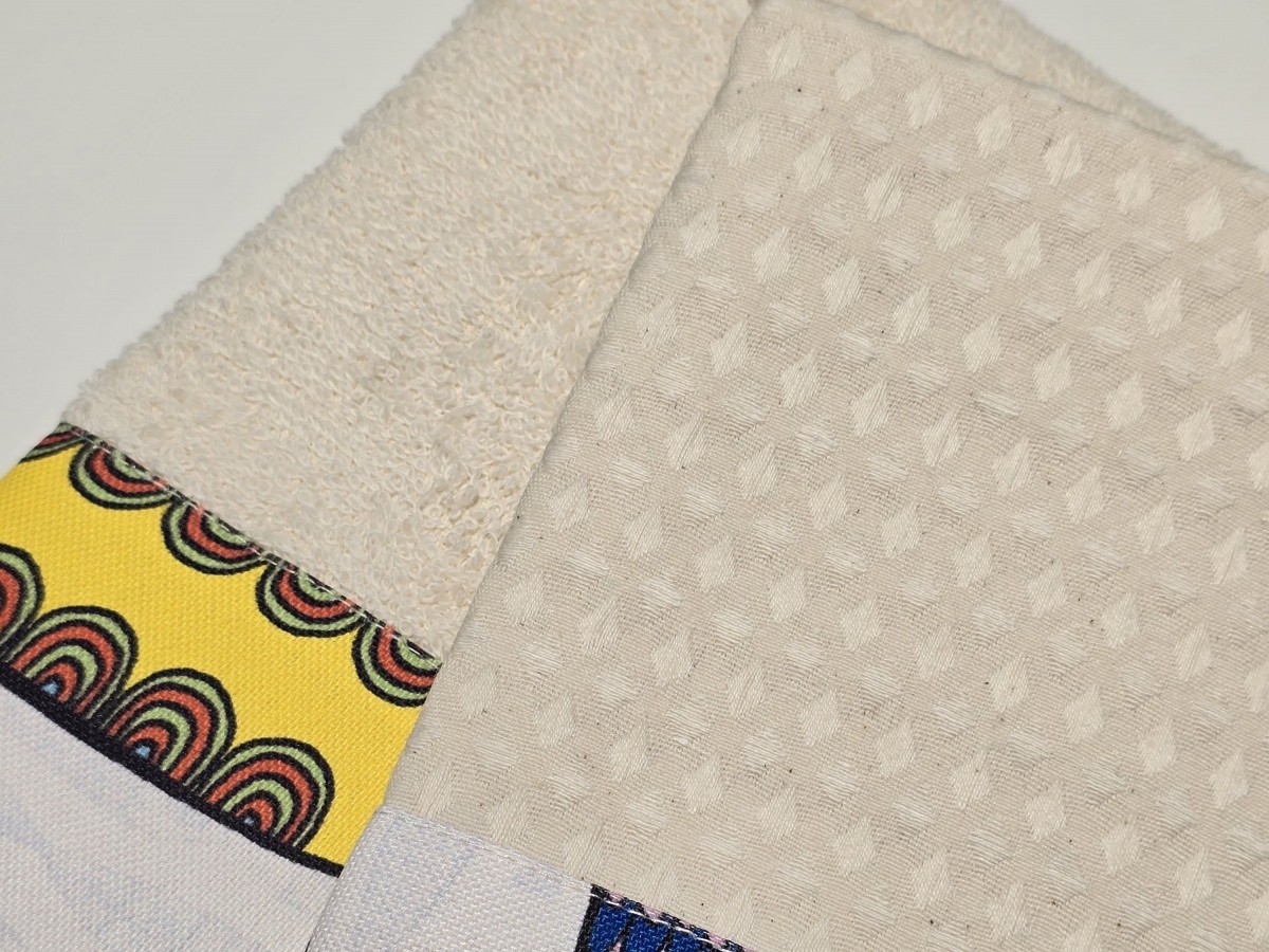 100% algodão | Barra aplicada | Kit 1 pano de cozinha + 1 felpo
